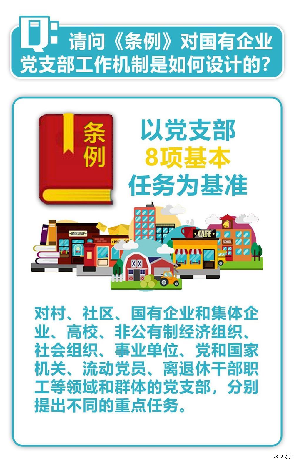 ?。ㄈ﹪衅髽I(yè)和集體企業(yè)中的黨支部,保證監(jiān)督黨和國家方針政策的貫徹執(zhí)行,圍繞企業(yè)生產經營開展工作,按規(guī)定參與企業(yè)重大問題的決策,服務改革發(fā)展、凝聚職工群眾、建設企業(yè)文化,創(chuàng)造一流業(yè)績。