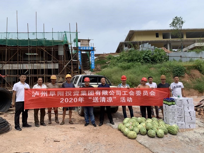 近日,合江持續(xù)高溫,為保障一線人員的身體健康,確保各項(xiàng)生產(chǎn)工作安全有序開展,8月11日,集團(tuán)公司黨委委員、工會主席袁健,帶領(lǐng)集團(tuán)黨群紀(jì)檢工作部、綜合部先后深入鑫晟學(xué)府、殯儀中心、龍掛山景區(qū)等十多個項(xiàng)目建設(shè)現(xiàn)場,看望慰問奮戰(zhàn)在一線的工作者,為他們送去清涼物資和關(guān)心關(guān)愛。