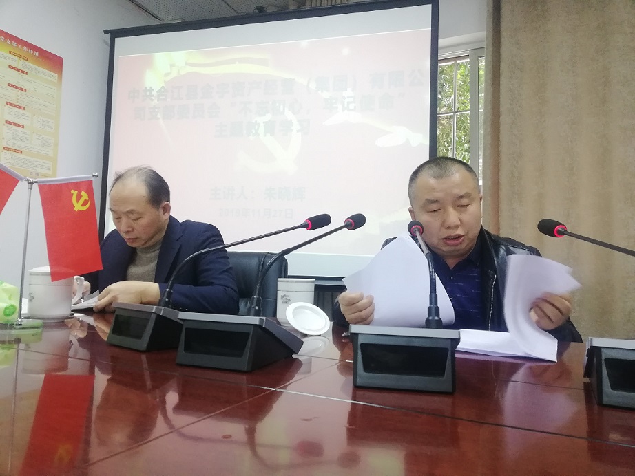 2019年11月27日合江縣金宇資產經(jīng)營(集團)有限公司組織“不忘初心、牢記使命”主題教育學習,朱曉輝總經(jīng)理在會上要求員工時刻牢記“講政治、講忠誠”“守紀律、講規(guī)矩”,樹牢紅線意識;指出主題教育學習在時間安排上雖然接近尾聲,但是時刻不能松懈,要持續(xù)增強“四個意識”、堅定“四個自信”、做到“兩個維護”,為新時代發(fā)展站好崗、履好職。