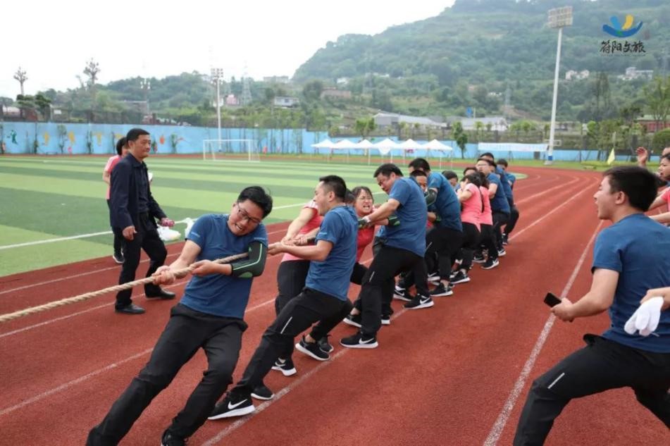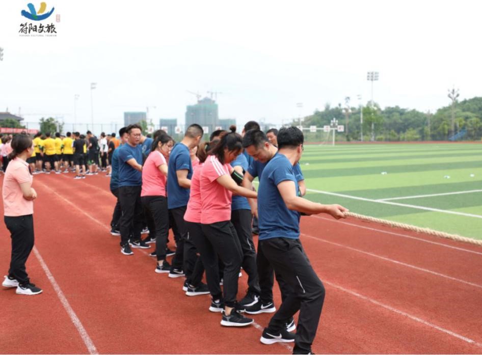 隨著哨聲一響,我們雙手握緊長(zhǎng)繩,咬緊牙關(guān)向后拉,為了把握節(jié)奏形成合力,心里默念著“一二、一二”,場(chǎng)上一時(shí)僵持難下,但難敵強(qiáng)悍對(duì)手,第一局廣源達(dá)勝。這仿佛符合多數(shù)人的預(yù)期,但我們?cè)鯐?huì)被拘于這固定印象,越戰(zhàn)越勇才是符陽(yáng)文旅人的風(fēng)姿。第二場(chǎng)對(duì)決比第一場(chǎng)更加艱難,一開場(chǎng)廣源達(dá)占據(jù)絕對(duì)優(yōu)勢(shì),我們險(xiǎn)被拉到了終線,全憑一口氣死撐,牙關(guān)咬緊,身體后傾,不斷降低重心,腳步穩(wěn)扎,做著別人眼里無(wú)畏的掙扎。一定不能越線!在超高壓下堅(jiān)持了十余秒,那一刻拼的就是韌勁!一群瘦弱的文旅人憑著一股拼勁慢慢把賽場(chǎng)主動(dòng)權(quán)掌握在了自己手中,每向后移動(dòng)一步,心里的勁更足了,如荒漠迷路的旅者遇見(jiàn)了綠洲,我們也尋得了力量之源。當(dāng)現(xiàn)場(chǎng)歡呼聲響起時(shí),我們已癱坐一片,不敢置信,我們贏啦!